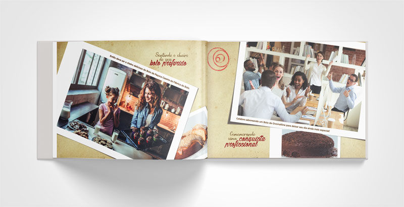 Idealizamos um livreto com momentos para saborear um bolo da Vó Alzira. Nele, ilustramos com fotos humanizadas e também, dos bolos exclusivos cada momento selecionado. O material foi um sucesso e cada página veio carregada de memória afetiva e significado.